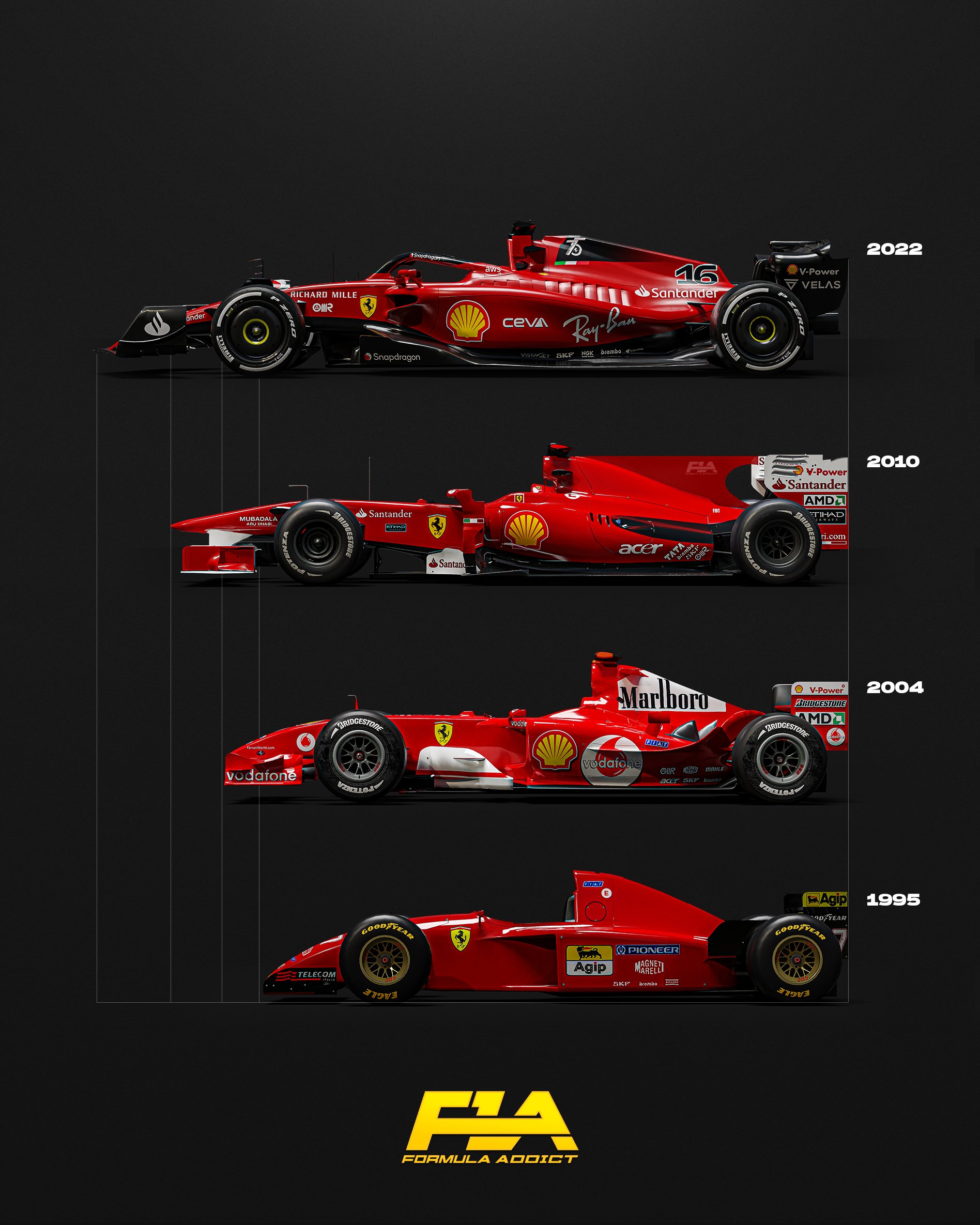 20 years ago, F1 cars were 4.5 m long and 1.8 m wide. Today’s cars are much bigger, 5.63 long and 2m wide and almost 1m high. And the weight is around 800kg without a pilot.